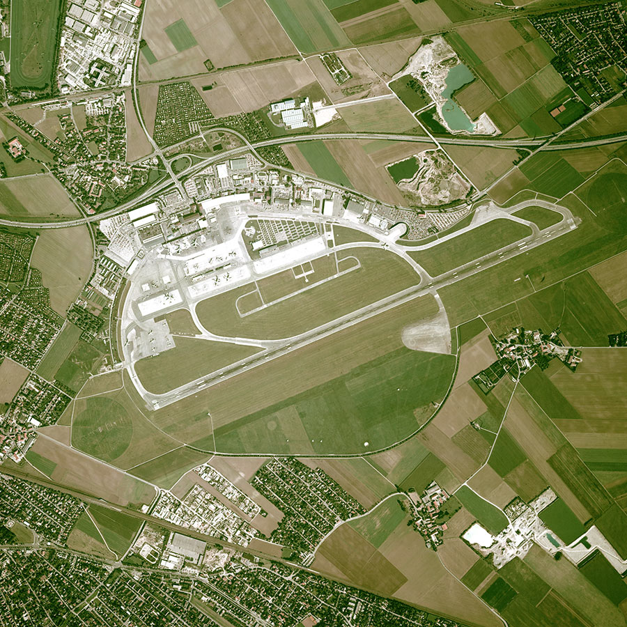 Die Luftbildreihe dokumentiert die Entwicklung des Flughafens München-Riem. Aus dem ursprünglich militärisch genutzten Flugplatz wurde ein ziviler Flughafen und schließlich die Messestadt Riem. Die Luftbilder des Münchner Flughafens Franz Josef Strauß oder des Albrecht Dürer Airports Nürnberg eröffnen weitere Einblicke in die Entwicklung der internationalen Drehkreuze. Aus der Perspektive von oben werden vor allem die vielfältigen Strukturen der Flughäfen sichtbar.